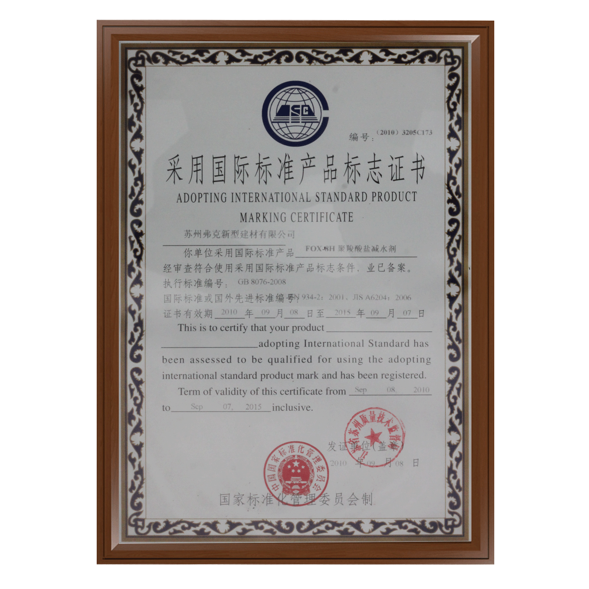 國際標準產品證書