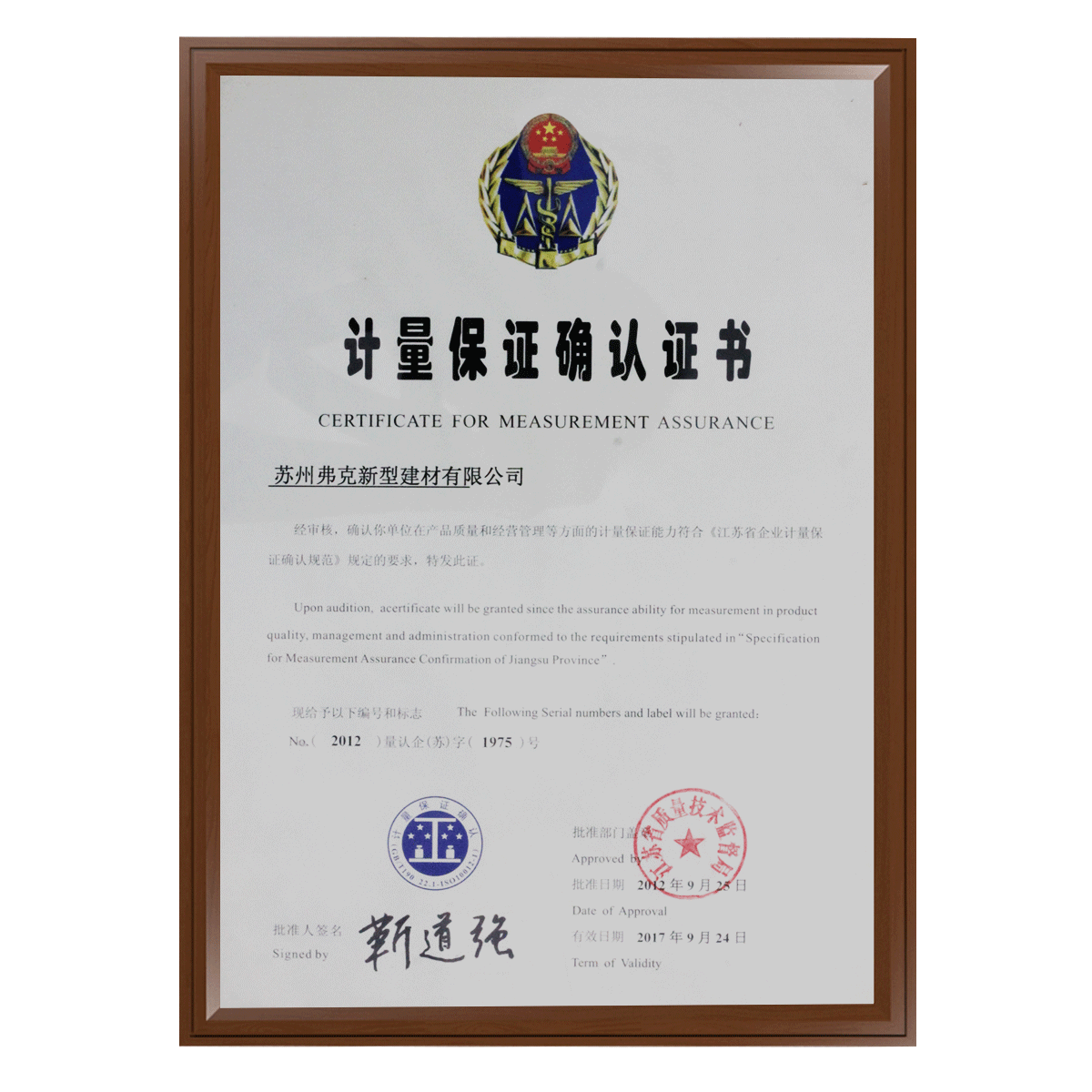 計量保證確認證書